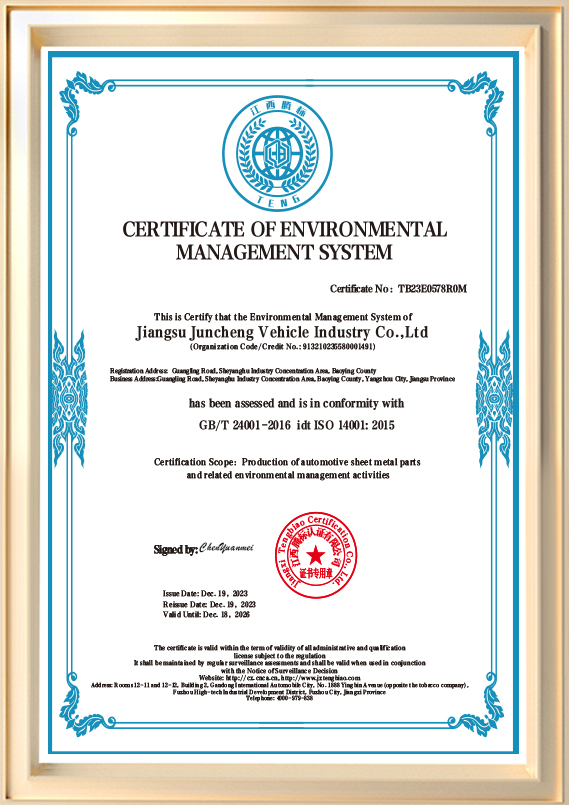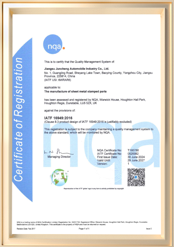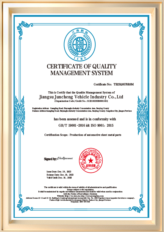 Fundada en 2012 y con sede en el condado de Baoying, Yangzhou, provincia de Jiangsu, un reconocido centro industrial de componentes metálicos para automóviles en China, Juncheng se especializa en investigación y desarrollo, fabricación de precisión y distribución global de componentes metálicos para automóviles de alta calidad.